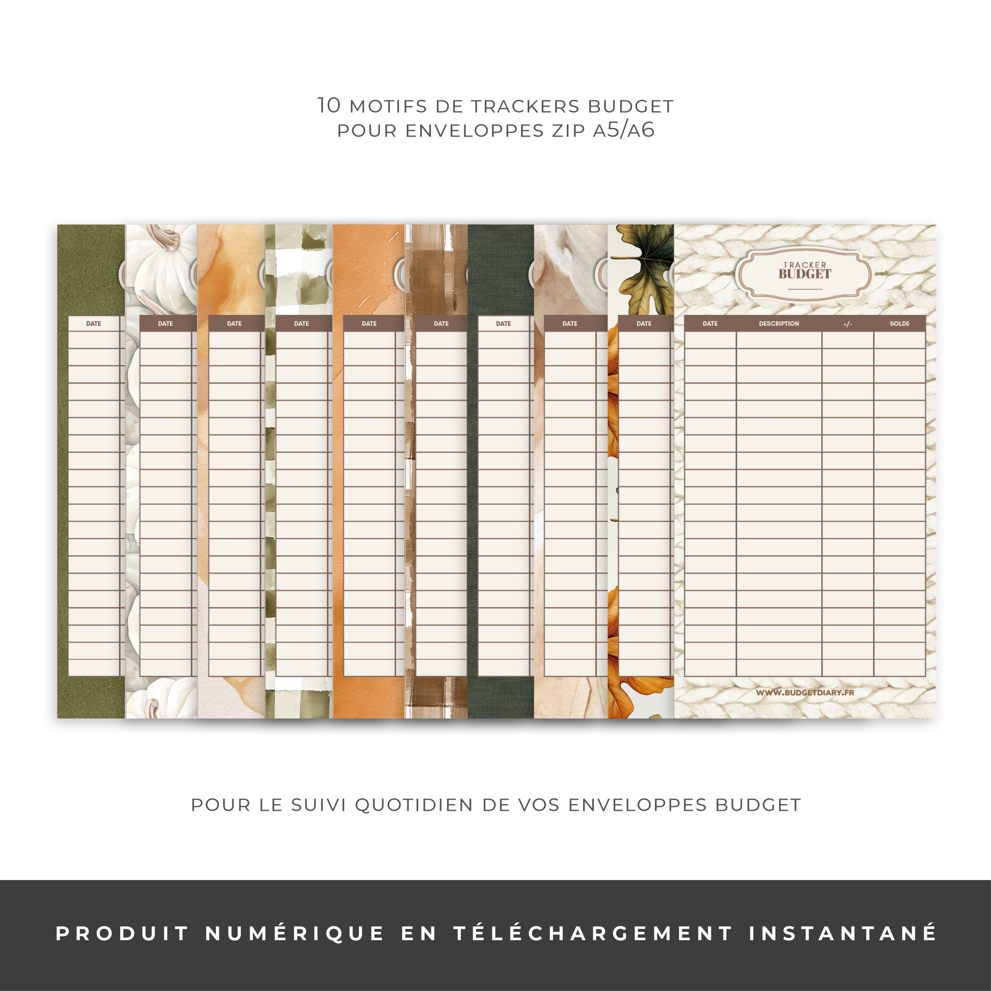 Ces trackers de suivi budget sont spécialement conçus pour entrer dans vos enveloppes budget à zip au format A5 ou A6 et vous permettront de suivre votre budget au jour le jour ! Ces trackers sont à imprimer et plastifier (optionnel) chez-soi.
